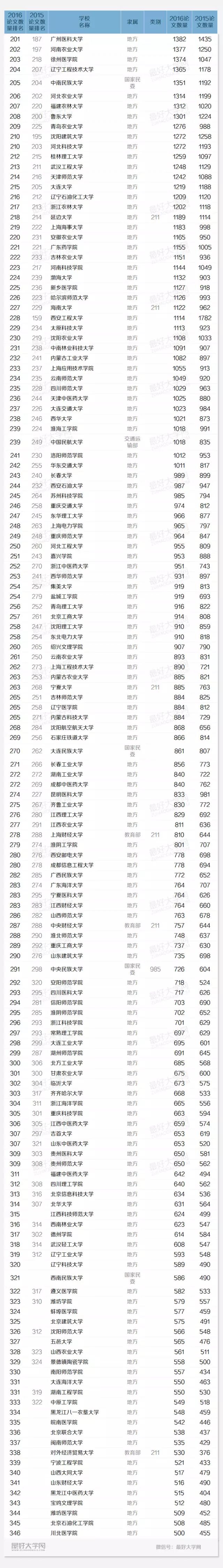 2016科研规模排名201-346